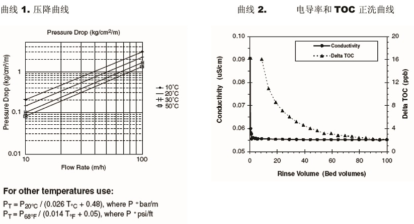 -電導率清洗至0.055μS/cm(見曲線2) 2bed volumes